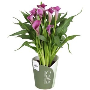 Geselecteerd artikel Zantedeschia Paco SoHappyCalla paars met groene potcover Artikelcode P03P