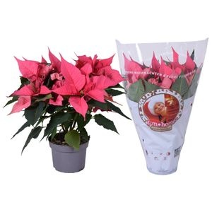 Openen in Floriday Potmaat 13 cm Min planthoogte inclusief pot 30 cm Rijpheidsstadium 2-3 Min aantal bloemen/bloeiwijzen pot 5 Transporthoogte 50 cm Bloem/bes/vruchtkleur 1 roze Kwaliteitsgroep A1 Themadagen Kerst
