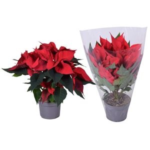 Openen in Floriday Potmaat 13 cm Min planthoogte inclusief pot 30 cm Rijpheidsstadium 2-3 Min aantal bloemen/bloeiwijzen pot 5 Transporthoogte 50 cm Bloem/bes/vruchtkleur 1 rood Kwaliteitsgroep A1 Themadagen Kerst