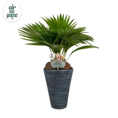 De Livistona is een elegante palm met waaiervormige bladeren die direct rust en klasse brengt. Naast zijn tropische uitstraling helpt hij de lucht te zuiveren door schadelijke stoffen te filteren en de luchtvochtigheid te verbeteren. Mooi én gezond.